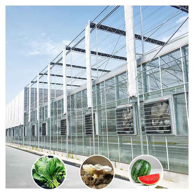 گلخانه شیشه ای چند دامنه بهترین راه حل ساختاری گلخانه ای برای تولید تجاری سبزیجات، میوه ها و گل ها و پرورشگاه ها در آب و هوای معتدل / سرد است.