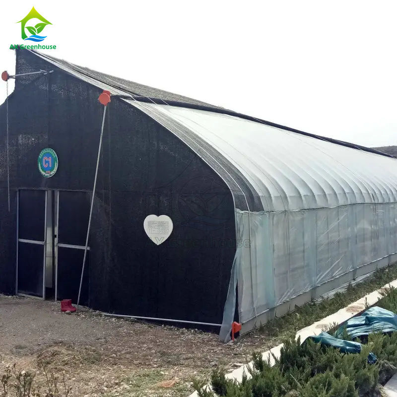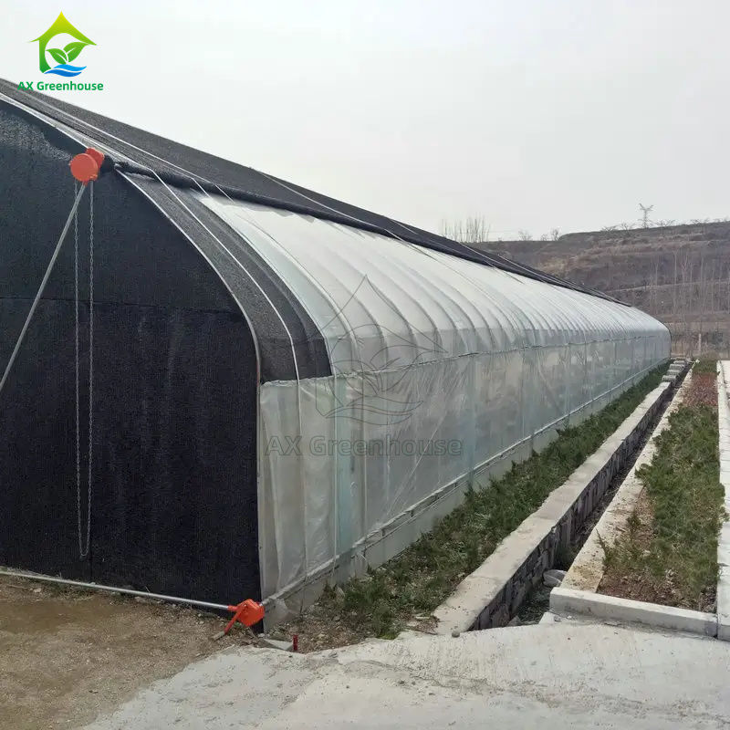 طراحی پوشش کامپوزیت چند لایه: لایه داخلی فیلم ضد چکه، رطوبت پایدار را حفظ میکند، در حالی که پشم سنگ را میتوان در وسط برای عایق اضافه کرد. لایه بیرونی فیلم سیاه و سفید، مسدود کننده نور، خنک کننده و تنظیم حرارت را فراهم میکند. بیرونیترین لایه را میتوان با یک توری سایهبان پوشاند تا نور و دما بیشتر بهینه شود.